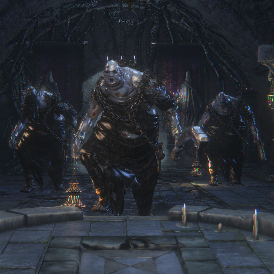 Босс немного сложнее, чем Мертвый гигант, из-за того, что боссов трое (но для тех, кто проходил подобных боссов в Dark Souls II или убивал Орнштейна и Смоуга в Dark Souls, этот босс будет очень легким). Всегда будет боссом на втором уровне Птумерианского лабиринта , если на Алтарь поставить Чашу Птумеру.