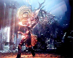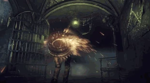 - Максимальной эффективности от данного орудия можно добиться, используя в паре со Сгустком крови чудовища. При атаке на R1, в двуручной стойке, полоса чудовищности будет заполнена полностью уже после 5-6 (при большом количестве озарения с 2-3) ударов подряд. Всё потому, что наносится одновременно и ударный урон и режущий, за счёт раскрутки дисков пилы.