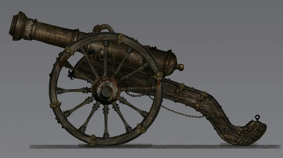 The cannon is a type of artillery and appears throughout Yharnam and the Chalice Dungeons. The cannons can be interacted with. When being used, they shoot a projectile in an uncontrollable arc, which explodes upon contact with a surface or character.