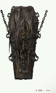 Most of the coffins found in Yharnam are chained. In Bloodborne: The Death of Sleep, The Child asks the hunter why so many coffins are present across Yharnam. The hunter itself is uncertain but responds with that they may be chained to prevent the infected inside to re-emerge as Beasts. It also suggests that wealthy Yharnamites put chains onto the coffins to avoid the corpses of relatives and loved ones being defiled by the Healing Church's experiments or become the target of the body snatchers.