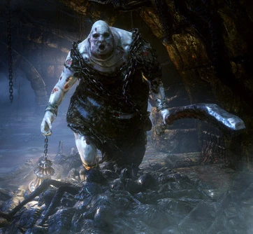 Merciless Watchers are overweight, pudgy, extremely pale Pthumerians who wield a variety of weapons, ranging from firearms to heated blunt objects and lamps. They are often seen as enemies guarding over treasure or levers, often accompanied by Labyrinth Watchers. They will sometimes be covering some areas in cloth. Wrapped with chains for an unseen reason, some watchers have face covering cloth and sometimes take the appearance of a hunting party.