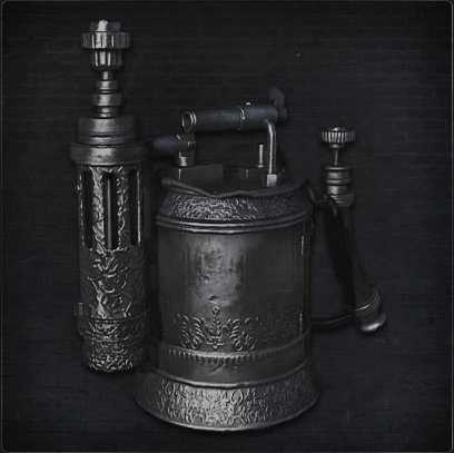 - The visual differences between it and the Flamesprayer is that the latter has a black cone with a thin tube on the end of the firing pipe (likely the device for producing a spark which then sets the gas ablaze), while also being made of a bronze-like metal, whereas the Rosmarinus has simply a silver look to it.